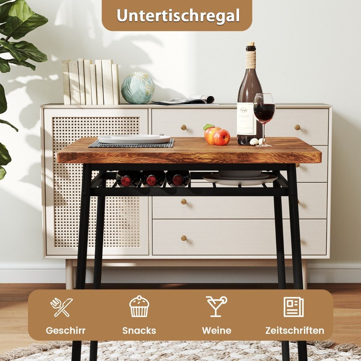 Valgomojo stalas su laikymo lentyna ir dviem kėdėm (Ruda)