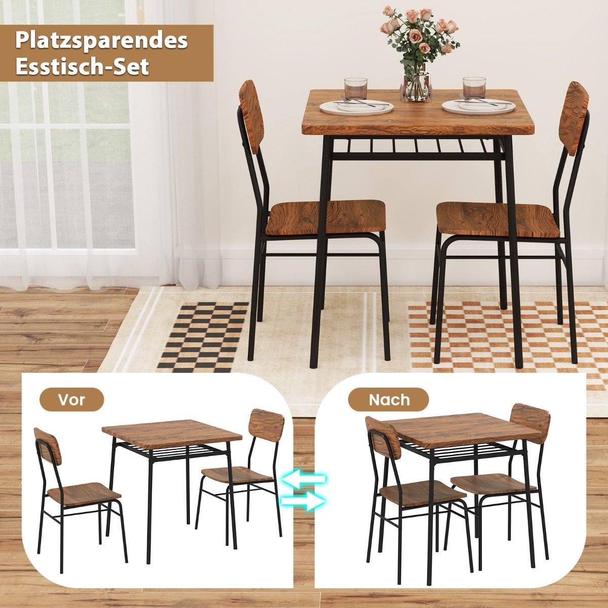 • Stalo matmenys: 70 x 70 x 77 cm (Ilgis x Plotis x Aukštis)