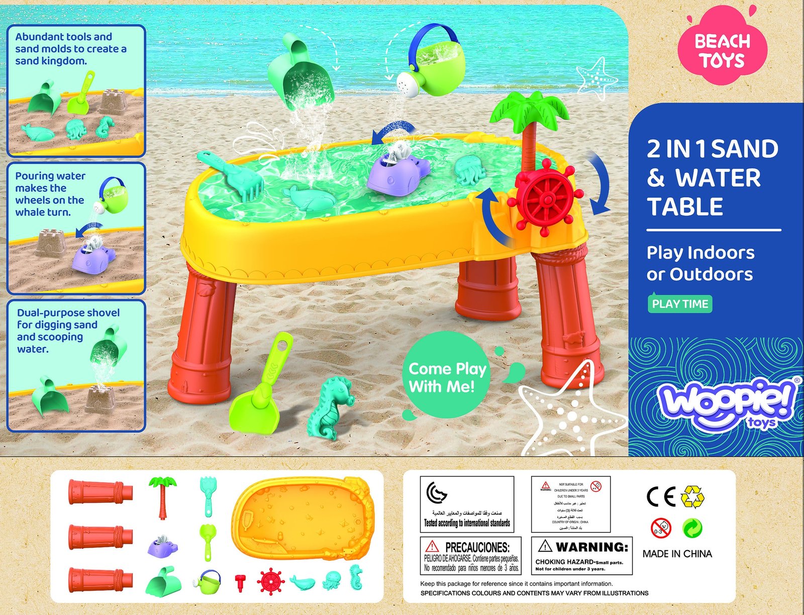 WOOPIE vandens ir smėlio staliukas „Piratų laivas“ skirtas aktyviems žaidimams su vandeniu ir smėliu. Šis 2in1 staliukas, skirtas vaikams nuo 3 metų, suteikia galimybę žaisti tiek namuose, tiek lauke – jis puikiai tinka sode, kieme, paplūdimyje ar smėlio dėžėje. Staliukas turi interaktyvų vairą, kurį sukant vaikai gali pasijusti tikrais laivo kapitonais. Rinkinį sudaro 8 skirtingi priedai, kurie praturtina žaidimą ir suteikia įvairių pramogų mažiesiems piratams. Lengvas surinkimas užtikrina greitą ir patogų žaislo paruošimą.