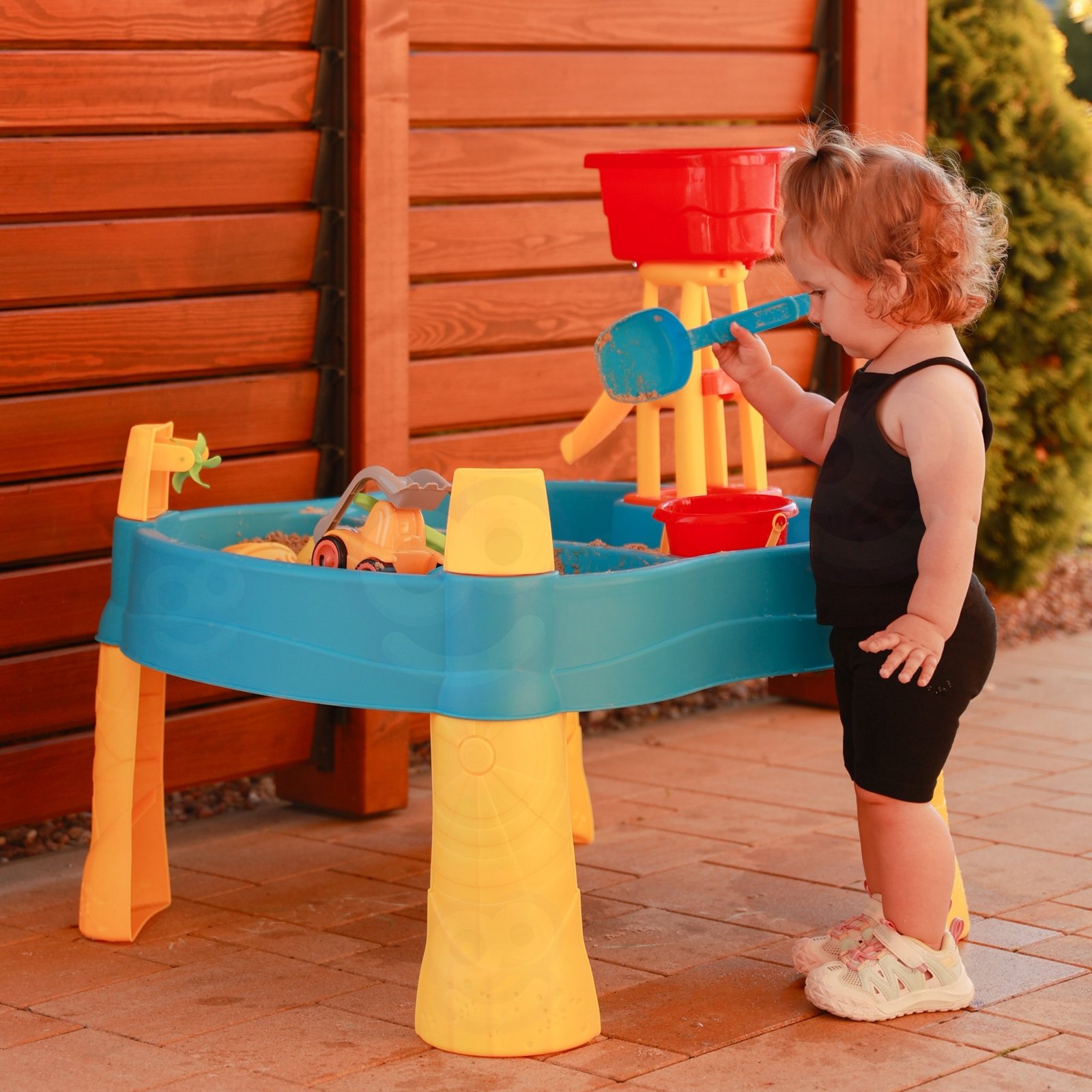 - Funkcija „2in1“: vandens staliukas ir smėlio dėžė.