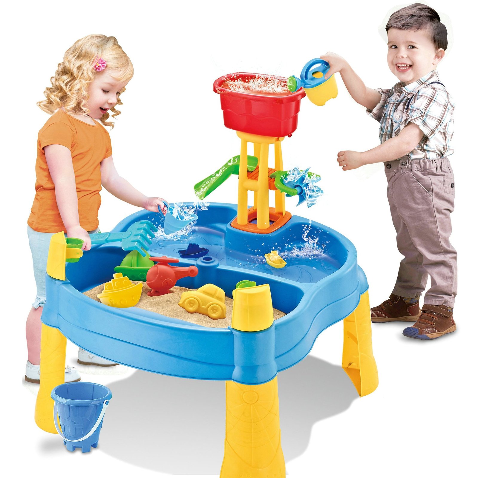 Staliukas turi dvi ertmes: vieną galima pripildyti vandens, kitą – smėlio. Tai leidžia mėgautis žaidimais bet kurioje vietoje. Vaikas gali pilti vandenį į malūnėlį ir stebėti, kaip vanduo srūva žemyn. Šiuo staliuku galima žaisti tiek namuose, tiek lauke – paplūdimyje ar smėlio dėžėje.