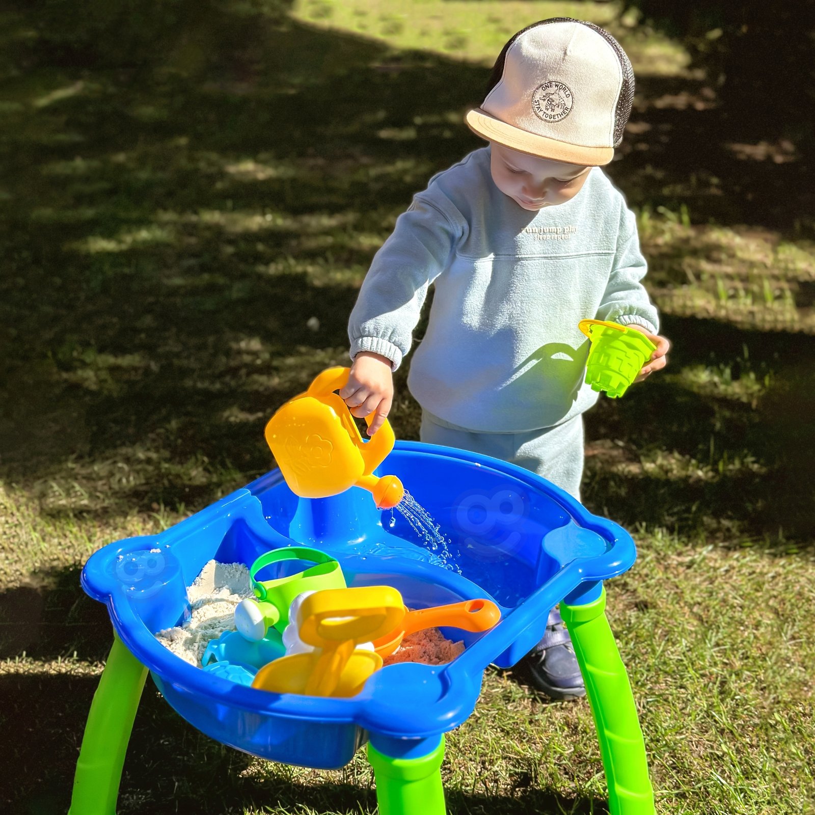- 2-in-1: vandens ir smėlio staliukas