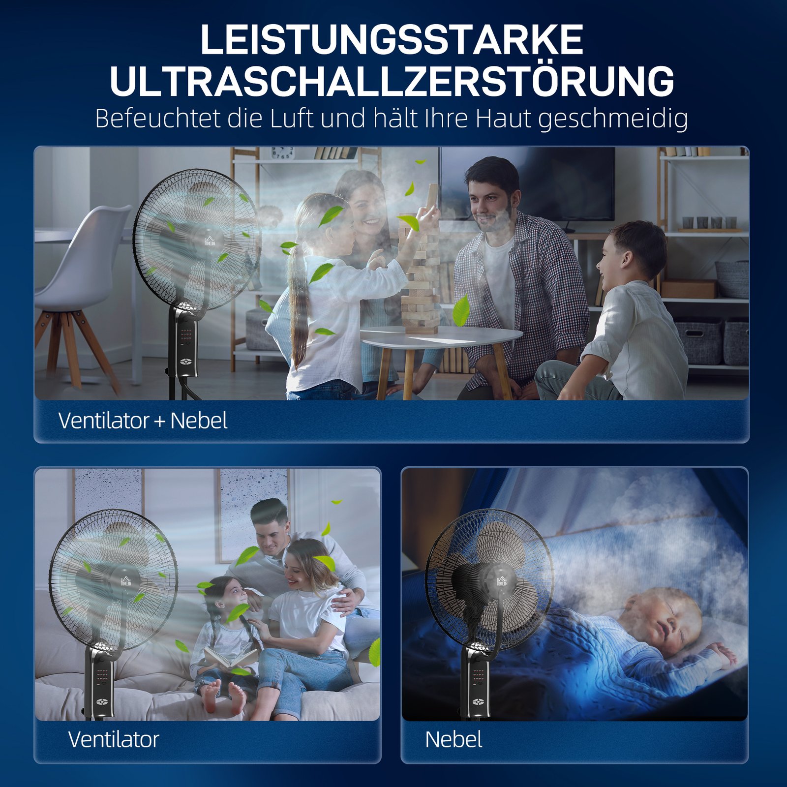 Ventiliatorius-drėkintuvas su aušinimo funkcija ir 70° osciliacija