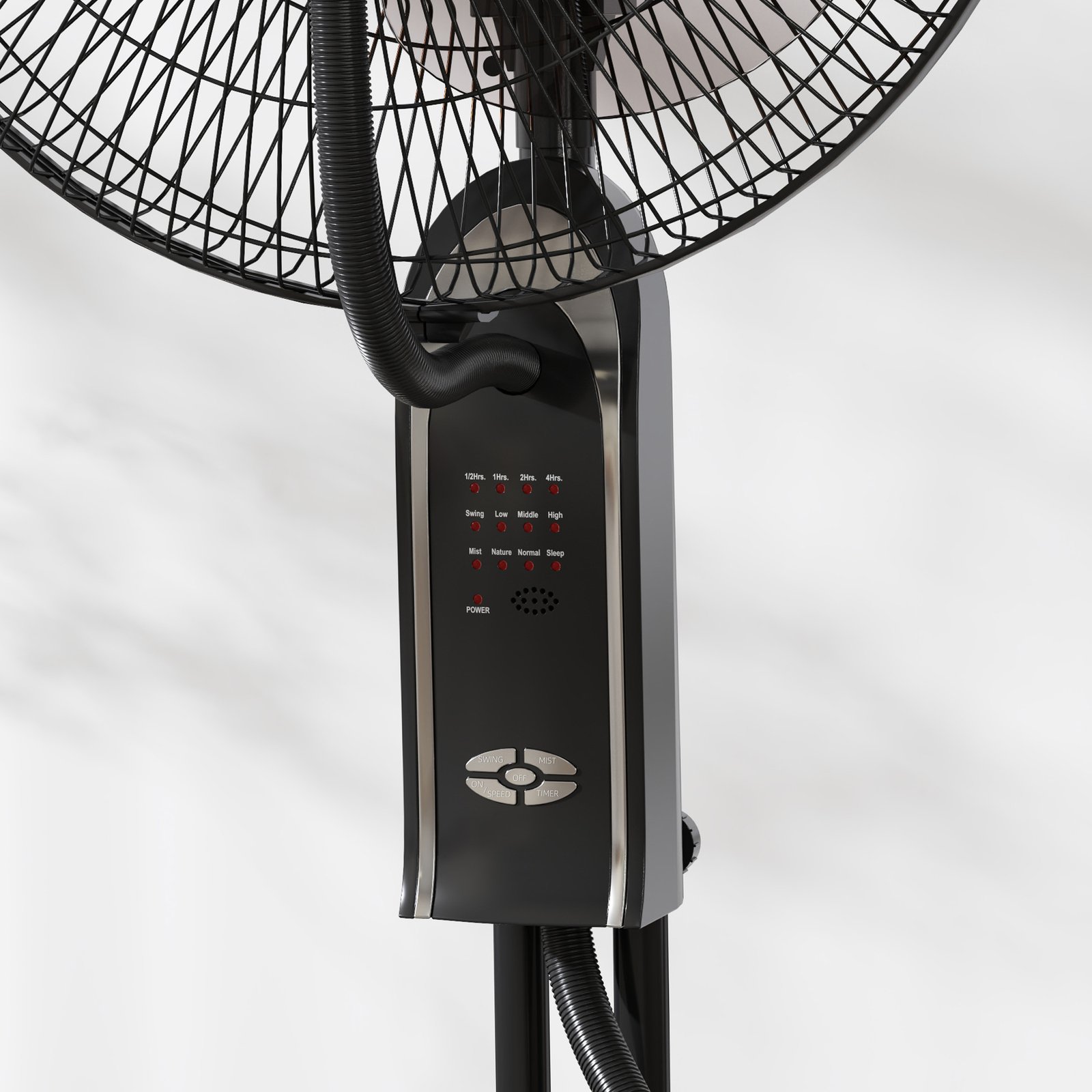 ✔ Didelis purškiamo rūko ventiliatoriaus vandens bakas ilgesniam naudojimui su žemo vandens lygio indikatoriumi