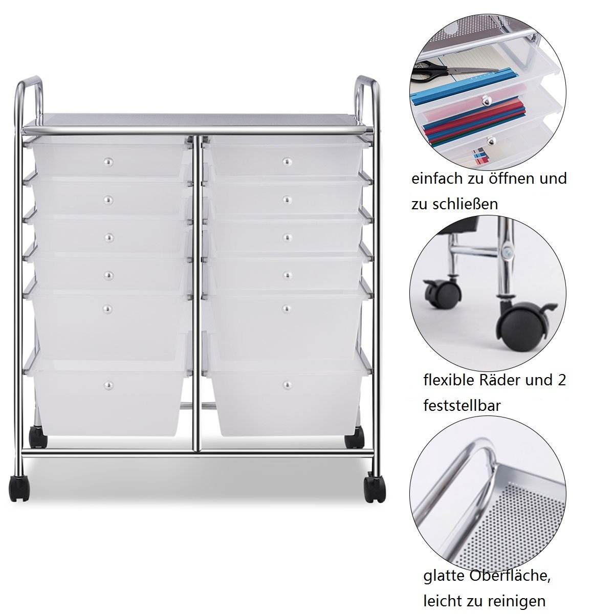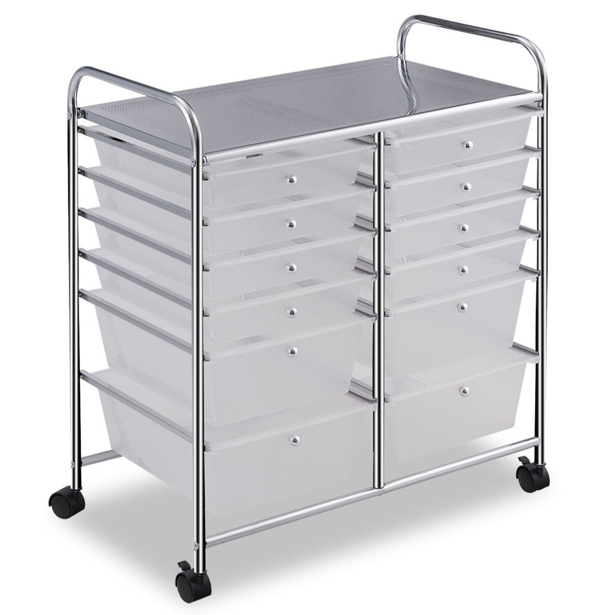 Vežimėlis su dvylika stalčių ir metaliniu rėmu (Skaidri)