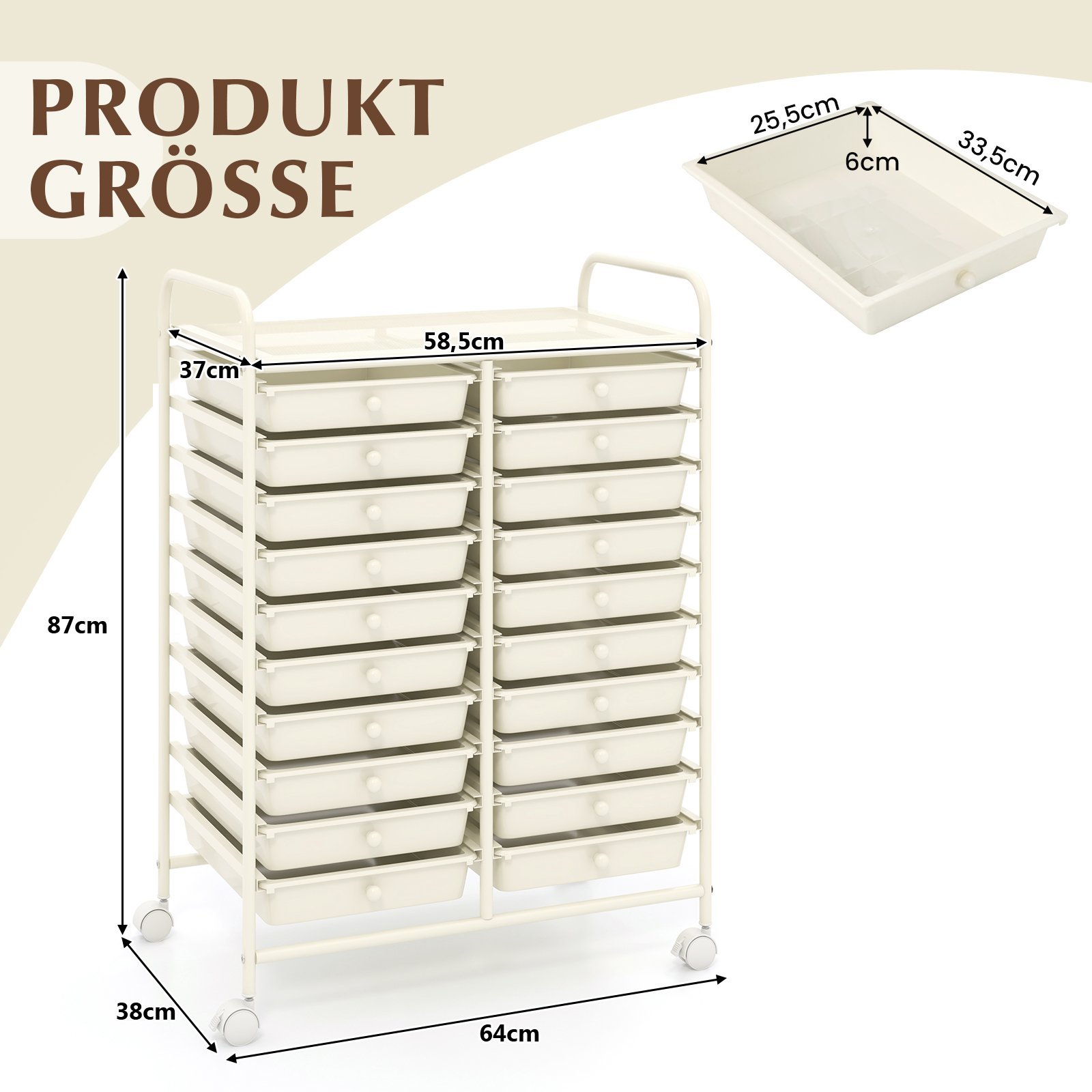- 1 x Vežimėlis su 20 stalčių