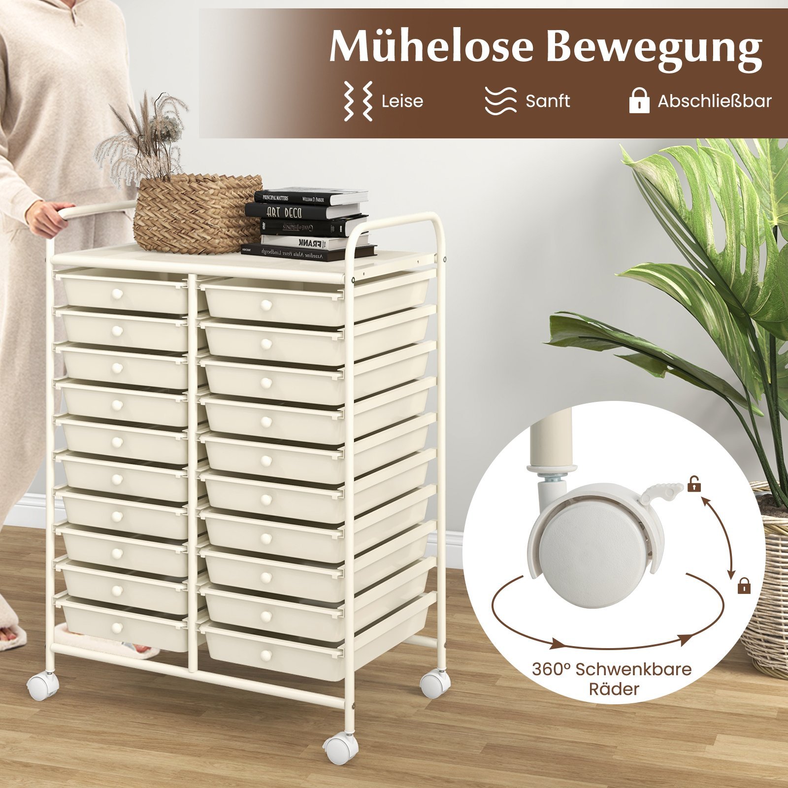 Ieškote patogaus ir talpaus daiktų laikymo sprendimo? Šis mobilus vežimėlis su 20 stalčių ir tvirtu metaliniu rėmu idealiai tinka tvarkai palaikyti jūsų namuose, biure ar studijoje. Sukurtas maksimaliam funkcionalumui užtikrinti, jis siūlo daug erdvės įvairiems daiktams, o jo mobilumo dėka jį lengva perkelti ten, kur reikia.