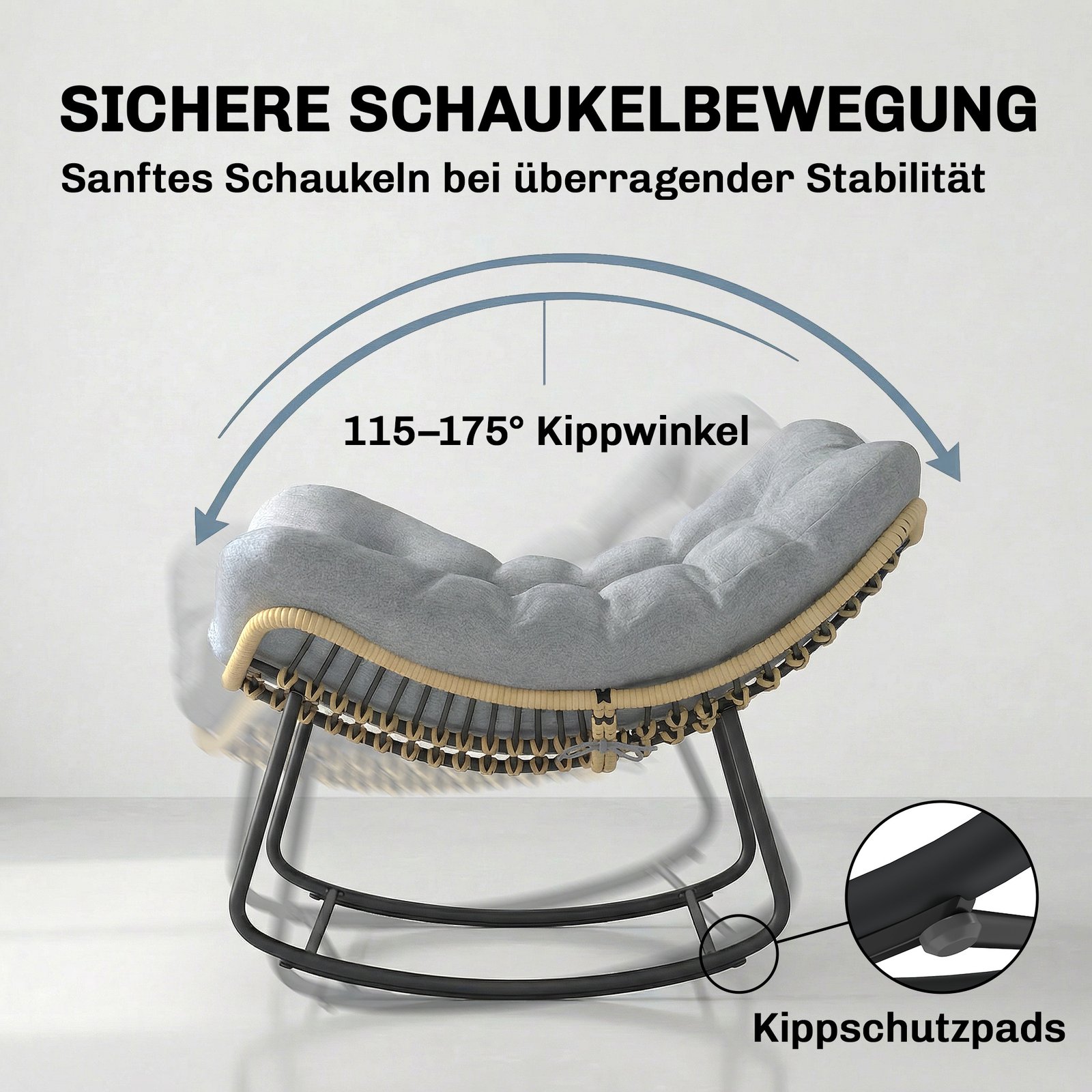 ✔ Rankomis pintas PE ratanas suteikia šiam lauko supamajam krėslui natūralios elegancijos ir atlaiko išorinius veiksnius