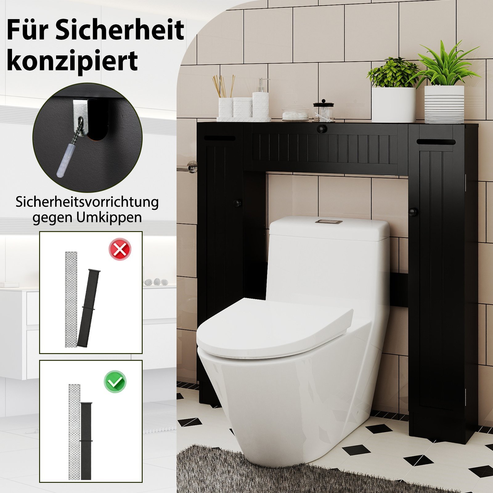 Atsisveikinkite su netvarka vonios kambaryje ir pasveikinkite puikiai organizuotą erdvę. Ši funkcionali ir universali spintelė virš tualeto sukurta taip, kad atitiktų Jūsų daiktų laikymo poreikius ir maksimaliai išnaudotų erdvę. Ji siūlo pakankamai vietos tualetiniam popieriui, higienos priemonėms, kosmetikai ir rankšluosčiams, o du reguliuojami lentynų aukščiai leidžia pritaikyti laikymo vietą pagal individualius poreikius.
