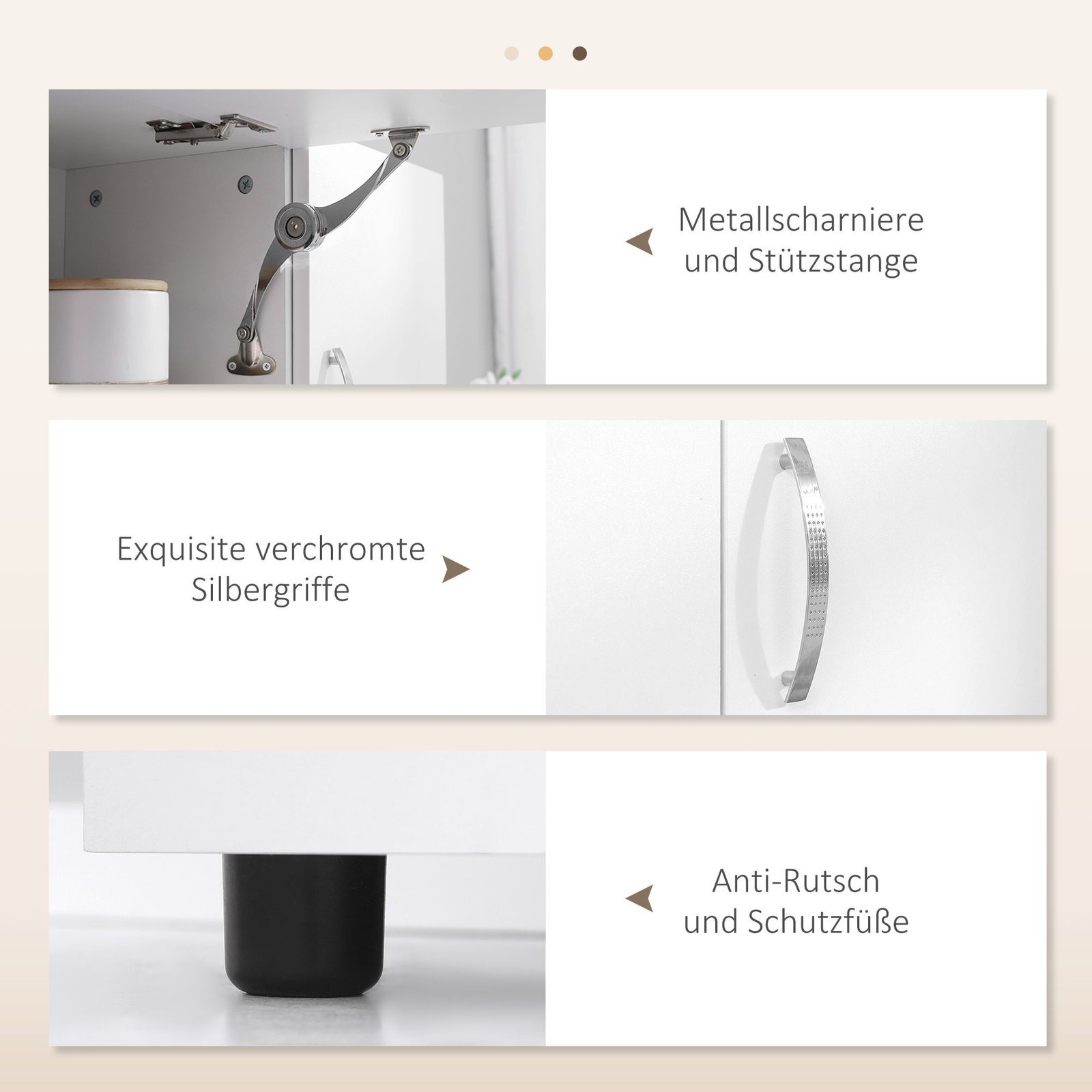 ✔ Su trimis spintelėmis, trimis stalčiais ir trimis lentynomis, ši spintelė suteikia daug vietos jūsų virtuvės reikmenims