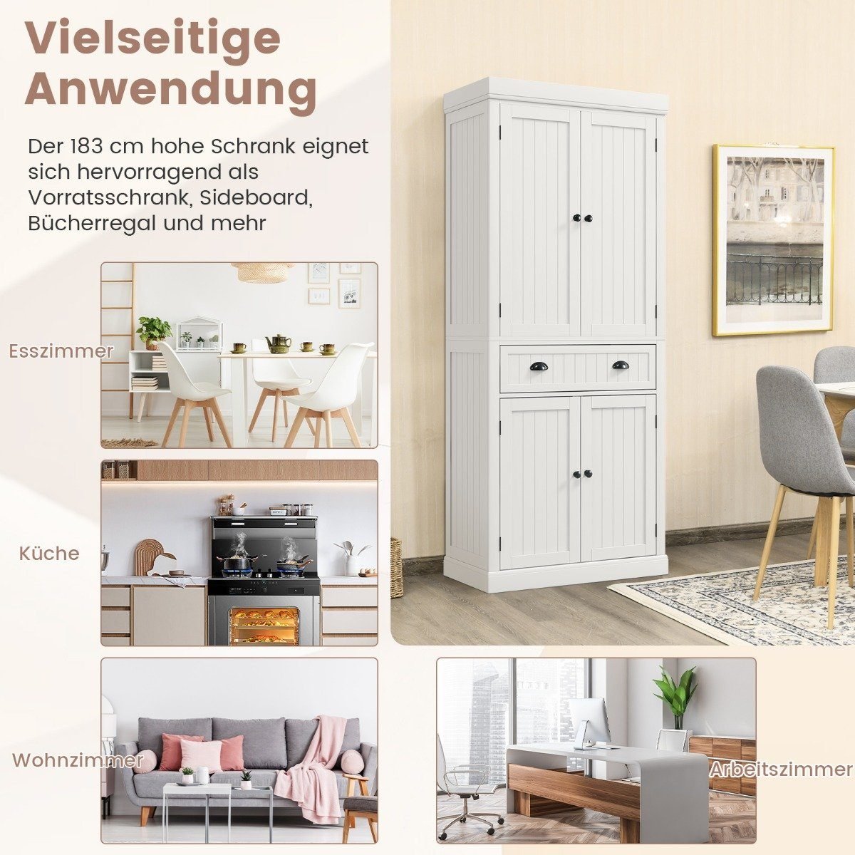 Tvarkinga virtuvė – tai lengvai pasiekiama! Ši aukšta spintelė su dviem durelėmis ir erdviu stalčiumi suteikia pakankamai vietos Jūsų virtuvės reikmenims. Reguliuojamos lentynos leidžia patogiai susidėti įvairaus dydžio daiktus, o tvirta konstrukcija su apsauga nuo apvirtimo užtikrina stabilumą ir ilgaamžiškumą. Tobulas funkcionalumo ir modernaus dizaino derinys Jūsų namams.