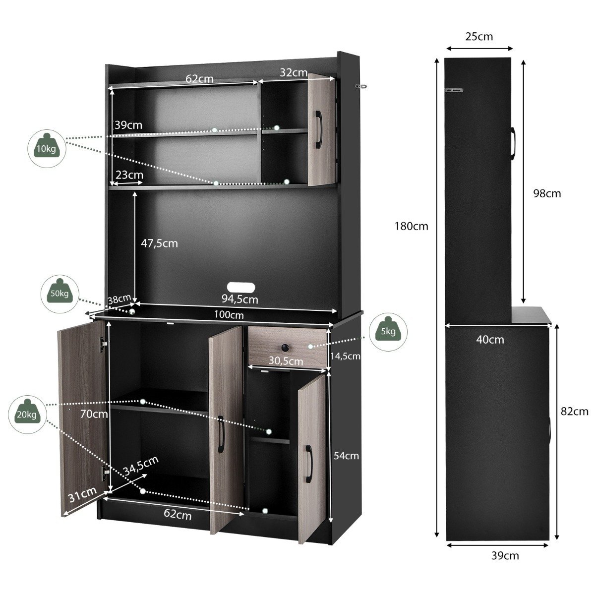 - Didelė talpa laikymui: su 9 lentynomis ir erdvia darbo plokšte jūsų virtuvės reikmenys bus tvarkingai sudėti ir visada pasiekiami.