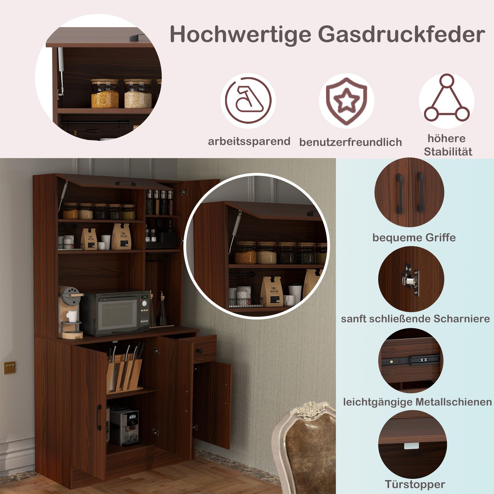 Sukurkite tvarkingą ir funkcionalią virtuvę su šia erdvia bei modernia spintele. Ji leis patogiai laikyti visus virtuvės reikmenis, o integruota įkrovimo stotelė užtikrins, kad jūsų elektroniniai prietaisai visada būtų paruošti naudojimui.
