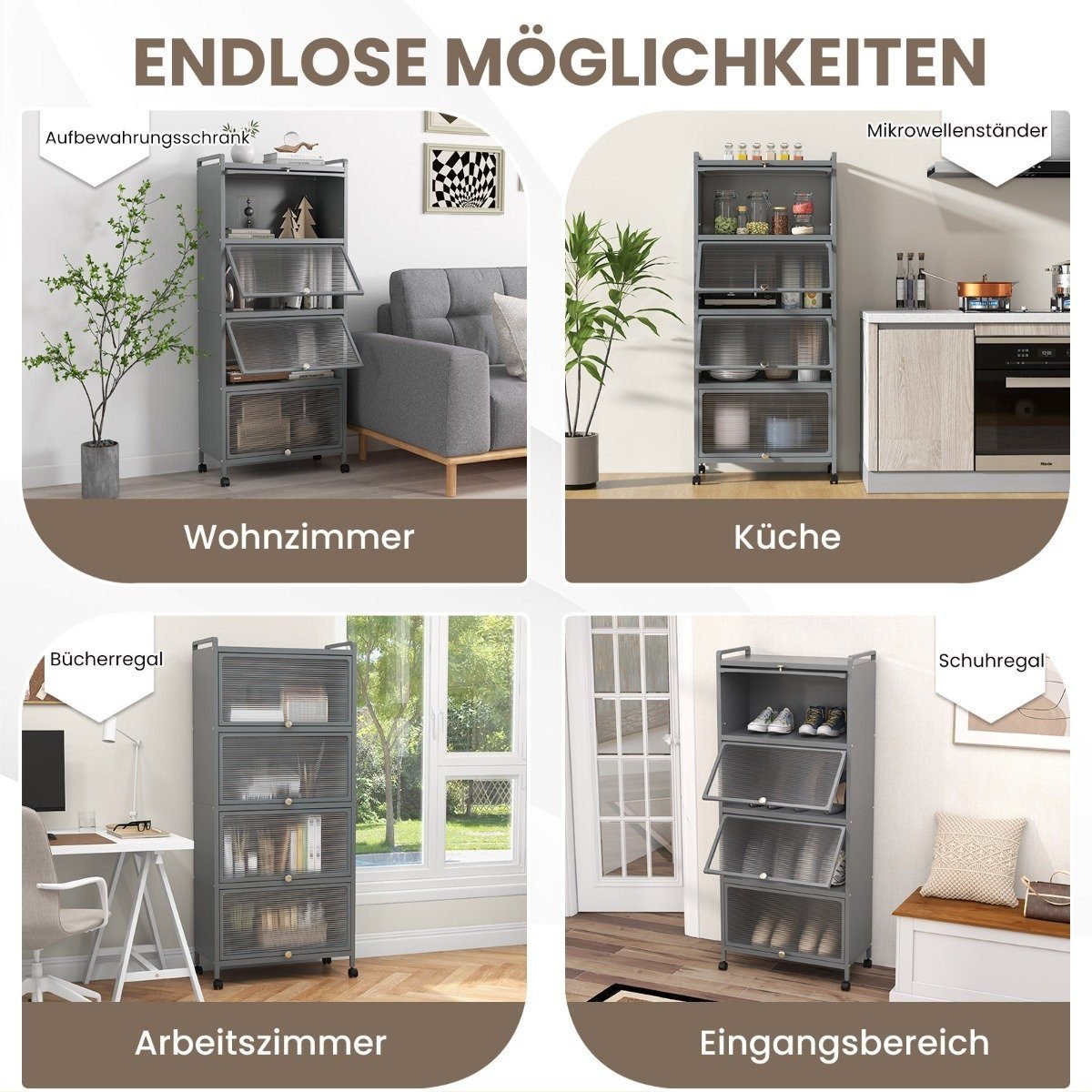 Virtuvės spintelė su ratukais ir atverčiamomis durimis (Pilka)