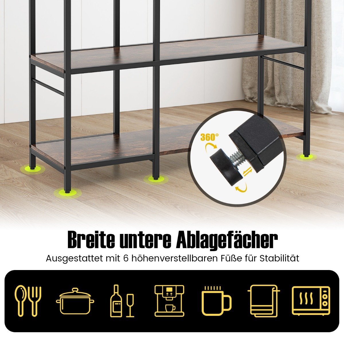 - 5 atviros pakopos padeda palaikyti virtuvės reikmenis tvarkingus ir lengvai pasiekiamus.