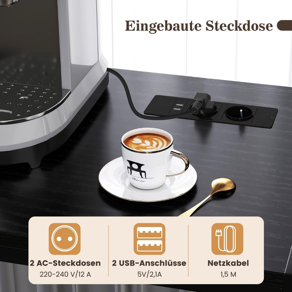 Virtuvės stovas su integruota elektros lizdo jungtimi (Juoda)