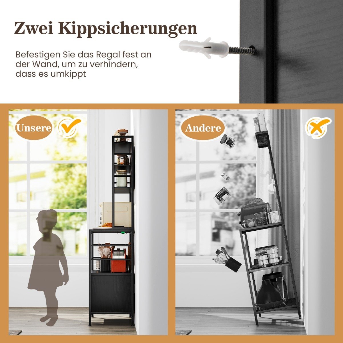 Pasirūpinkite tvarka ir patogiai įkraukite savo prietaisus su šiuo daugiafunkciu virtuvės išnešamuoju staliuku. Jis pasižymi įvairiomis daiktų laikymo vietomis: atviromis lentynėlėmis, spintele, pakabinamais kabliukais bei specialiais laikikliais vyno buteliams. Integruota elektros lizdų grupė su 2 AC ir 2 USB jungtimis leidžia patogiai krauti įrenginius ir naudoti elektrinius prietaisus virtuvėje.