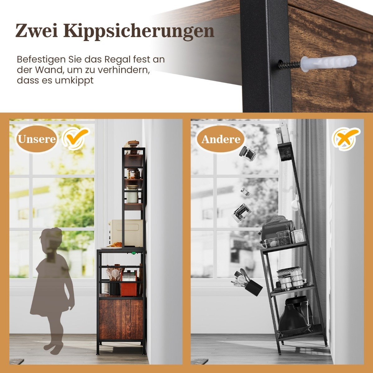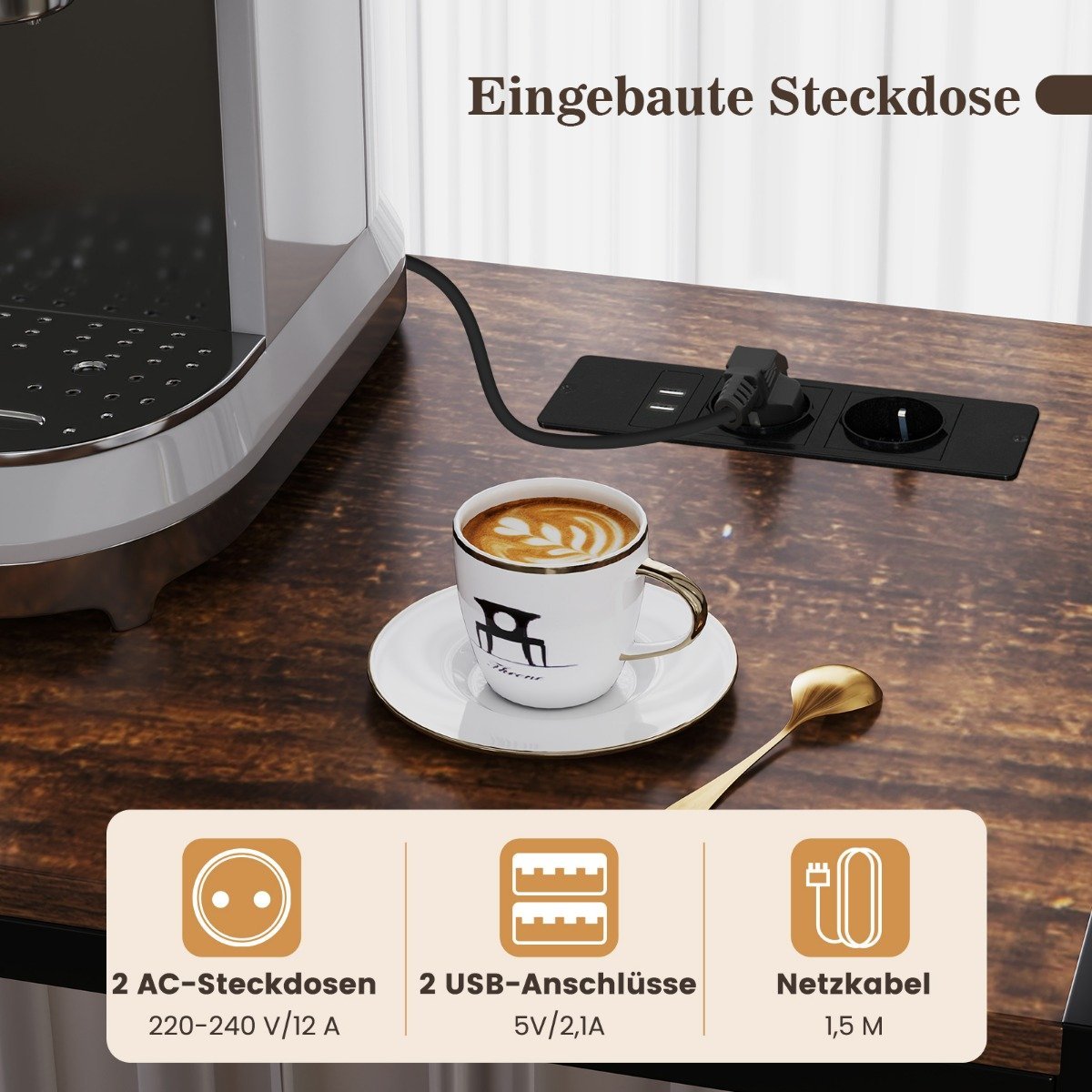 Virtuvės stovas su integruota rozete ir vyno laikikliu (Ruda)