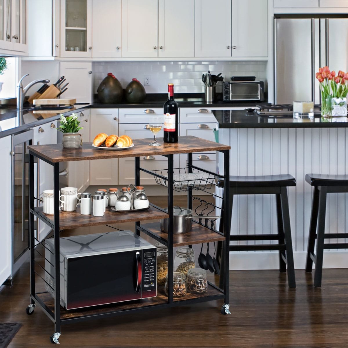 Padidinkite savo virtuvės funkcionalumą ir tvarką su šiuo universaliu 3 pakopų virtuviniu stovu. Jis suteikia daug papildomos vietos jūsų virtuvės reikmenims laikyti, padedant lengvai palaikyti švarą ir organizaciją.