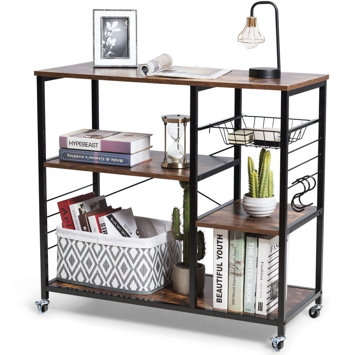 Virtuvės stovas su trimis lentynomis ir kabliukais (Ruda)