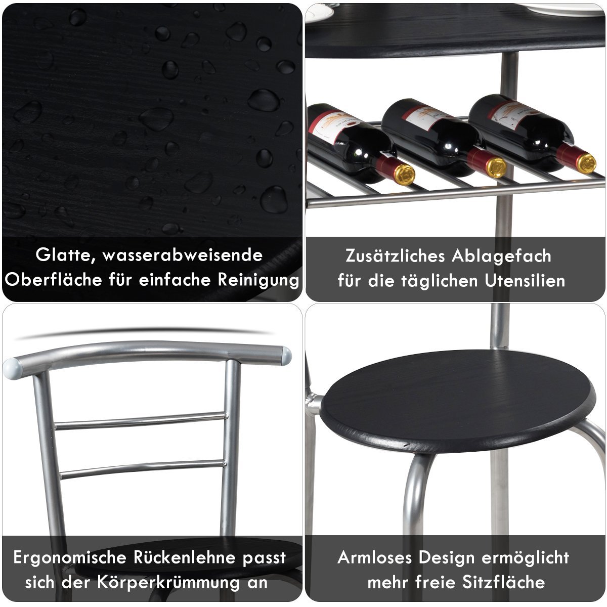 Šis 3 dalių stalo ir kėdžių komplektas – puikus pasirinkimas jūsų virtuvei ar valgomajam, ypač jei vertinate erdvės taupymą. Elegantiškas dizainas ir kokybiškos medžiagos garantuoja ilgaamžiškumą.