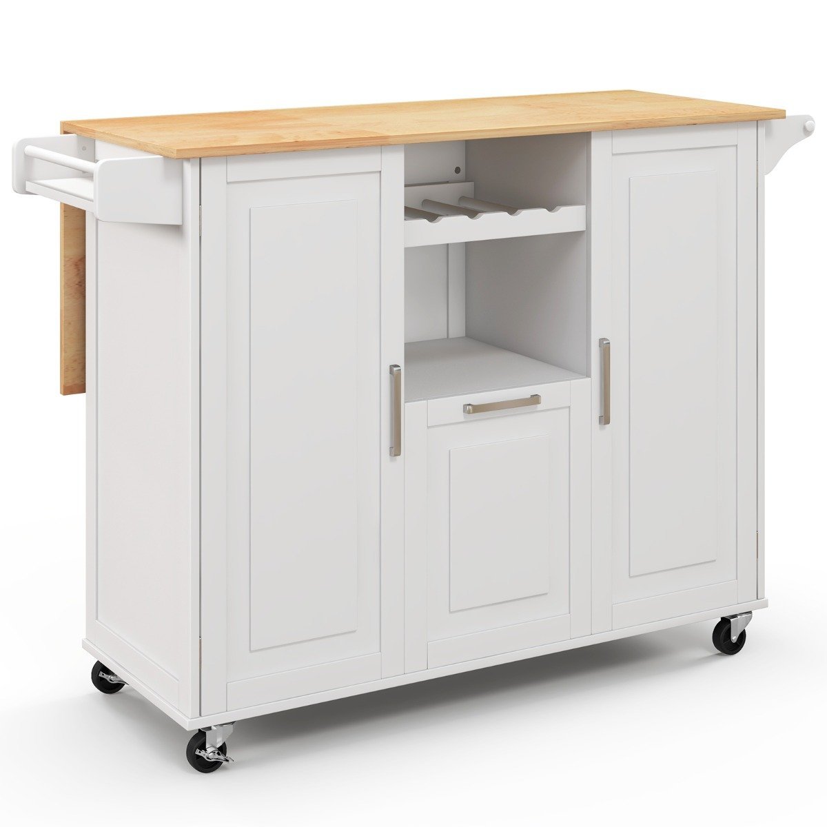 Virtuvės vežimėlis su išskleidžiama pertvara ir keturiais ratukais (Balta)
