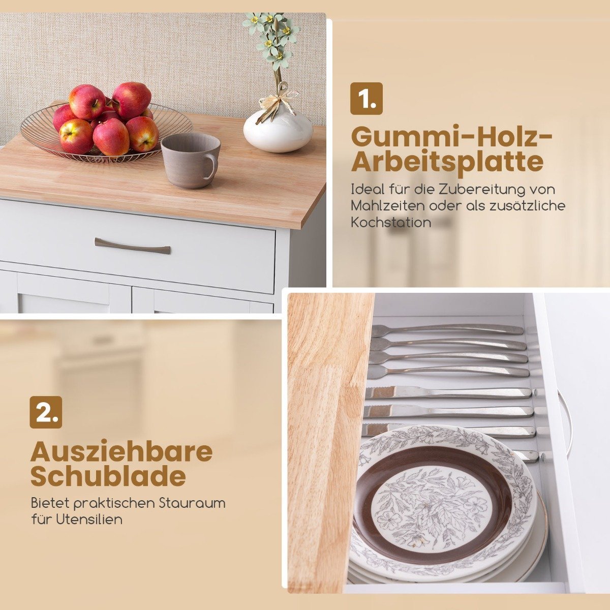 Šis virtuvės vežimėlis su patogiu stalviršiu suteikia daug vietos maisto ruošimui ir papildomoms laikymo galimybėms.