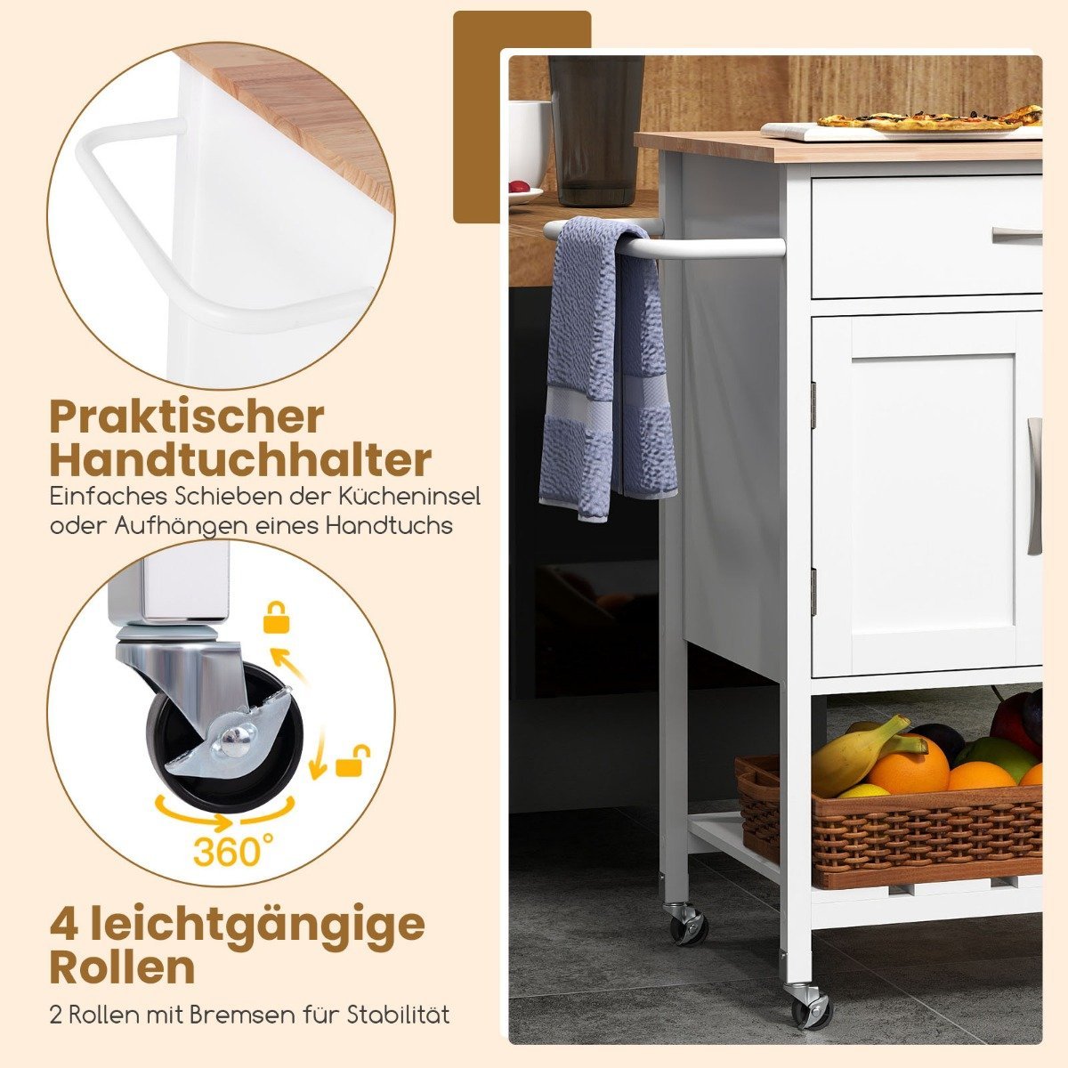 Virtuvės vežimėlis su stalčiais ir ratukais (Balta)