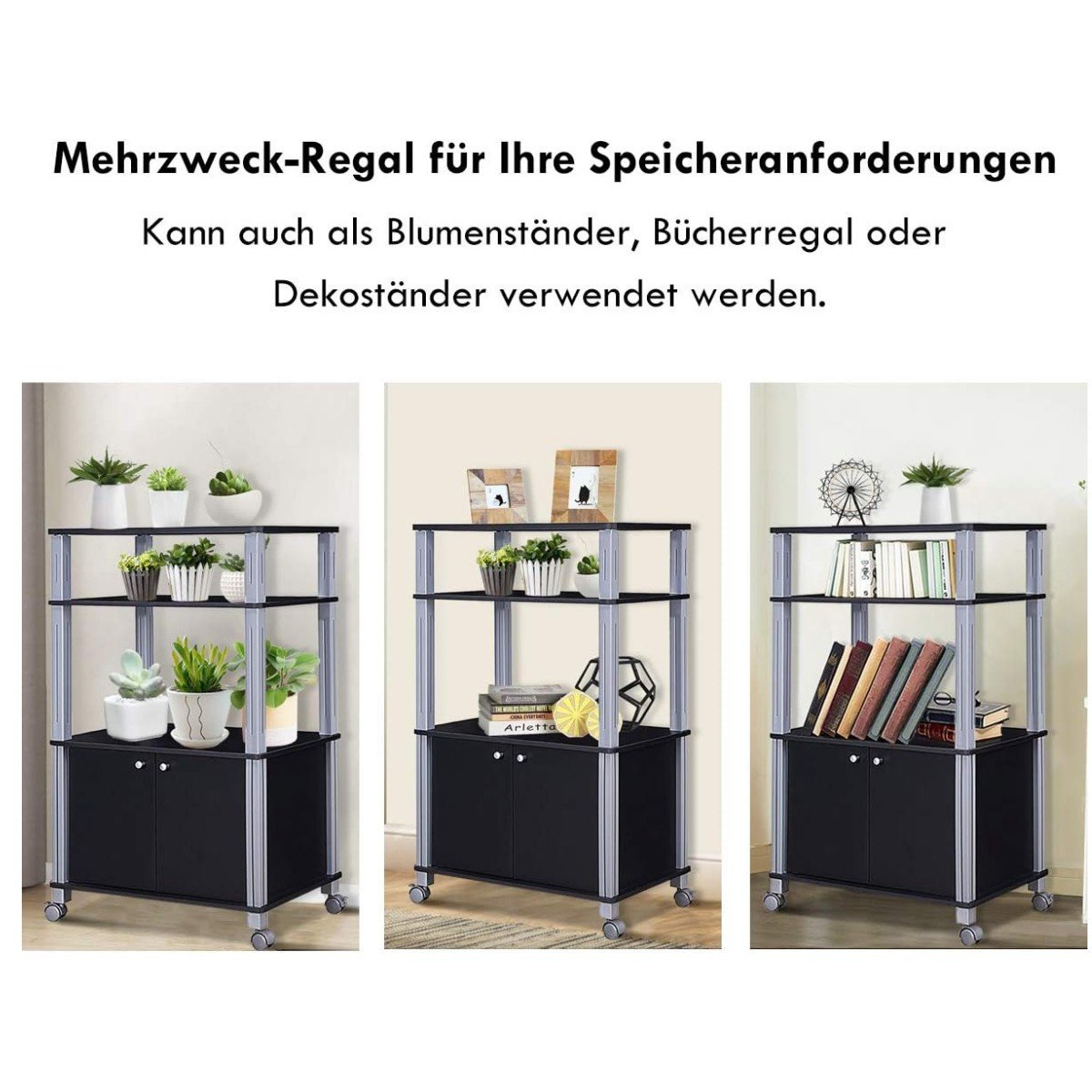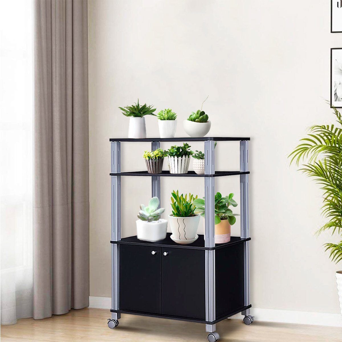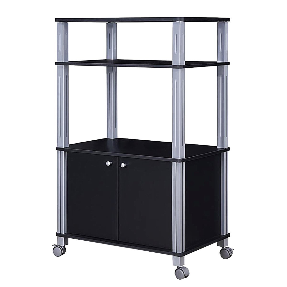 Virtuvinis vežimėlis su trimis lentynomis ir spintele (Juoda)