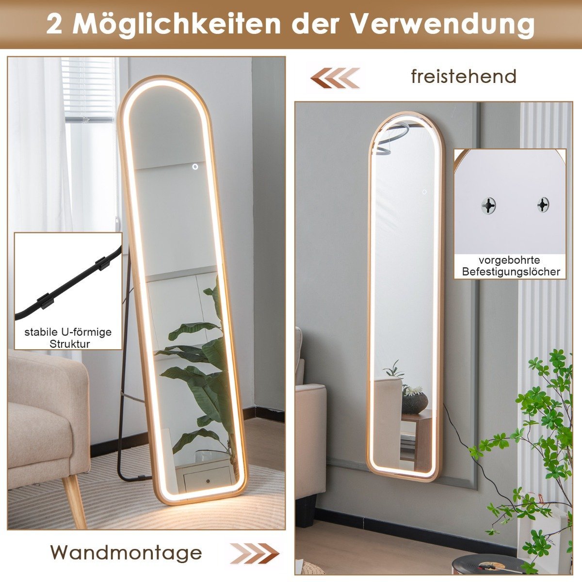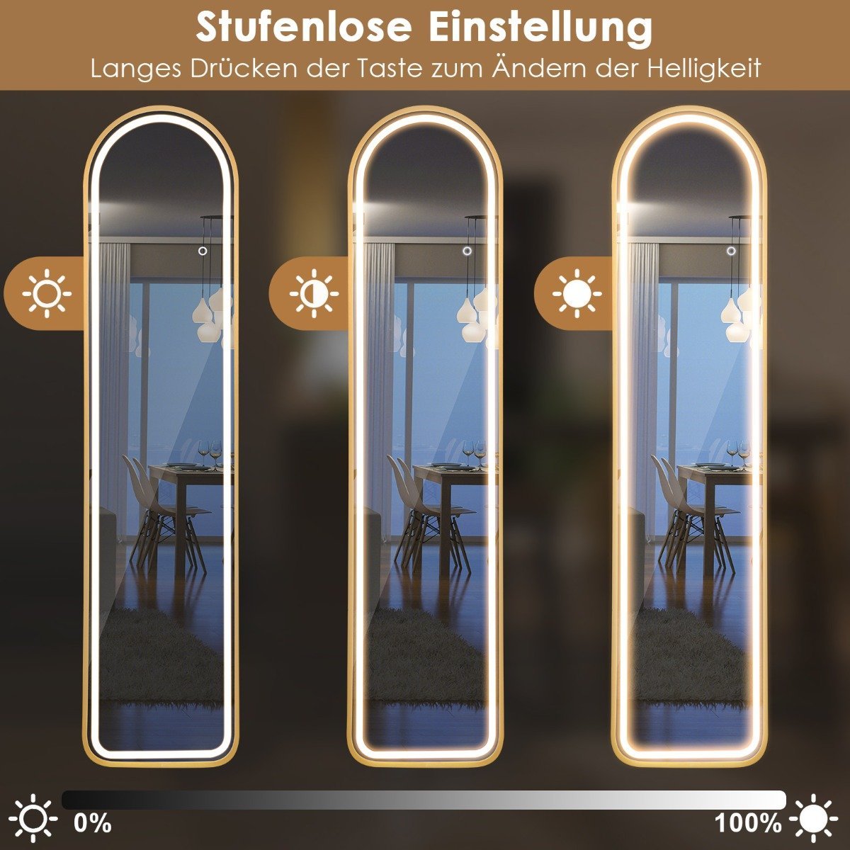 Viso kūno veidrodis su auksiniu aliuminio rėmu ir LED apšvietimu (Auksinė)