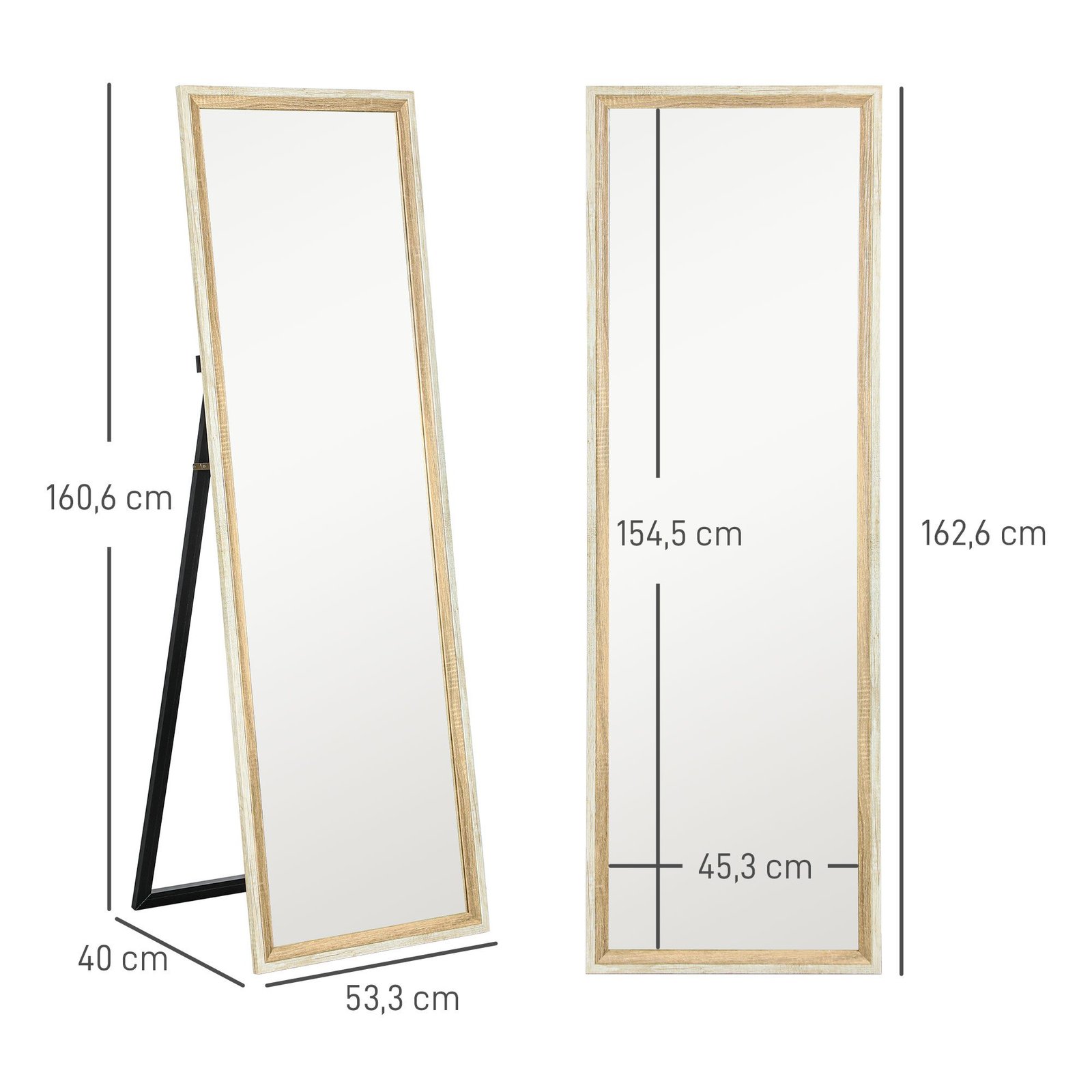 Šis pastatomas veidrodis su dviejų spalvų MDF rėmu, elegantiška balta ir natūralia medžio spalva, pasižymi stiliumi ir funkcionalumu. 162,6 x 53,3 cm dydžio veidrodis atspindi nepriekaištingą viso kūno vaizdą per didelės raiškos stiklą, apsaugotą nuo dūžių plėvele. Pastatykite jį, atremkite arba pritvirtinkite prie sienos – idealiai tinka bet kokiai patalpai.