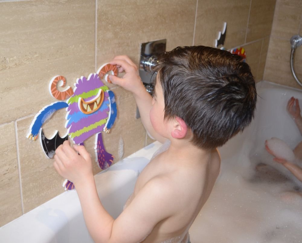 Rinkinį sudaro 30 monstriukų lipdukų ir tinklas. Kiekvienas elementas puikiai dera su kitais, suteikdamas visišką laisvę maišyti ir derinti monstriukus. Rinkinio elementai pagaminti iš specialaus putplasčio. Dėl šios medžiagos pakanka šiek tiek vandens, kad jie priliptų. Maudantis lipdukus galima klijuoti ant vonios, plytelių, stiklo ar net vienas ant kito, kaskart iš naujo kuriant vonios kambario peizažus. Puiki pramoga garantuojama! Elementai neskęsta, todėl jais galima smagiai žaisti ir ant vandens paviršiaus. Amžius: 3 metai ir vyresni. Tinklo matmenys: 23 x 27 cm. Atitinka CE standartus.