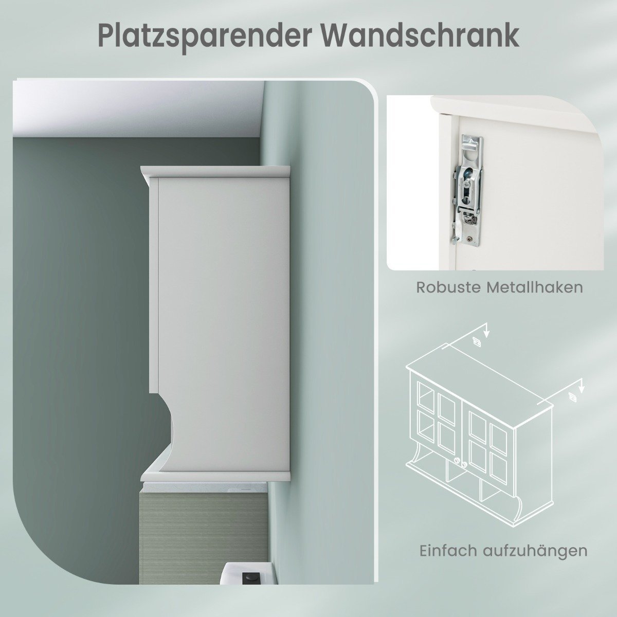- Kompaktiškas, prie sienos tvirtinamas dizainas – puikus sprendimas taupant vietą mažose patalpose.