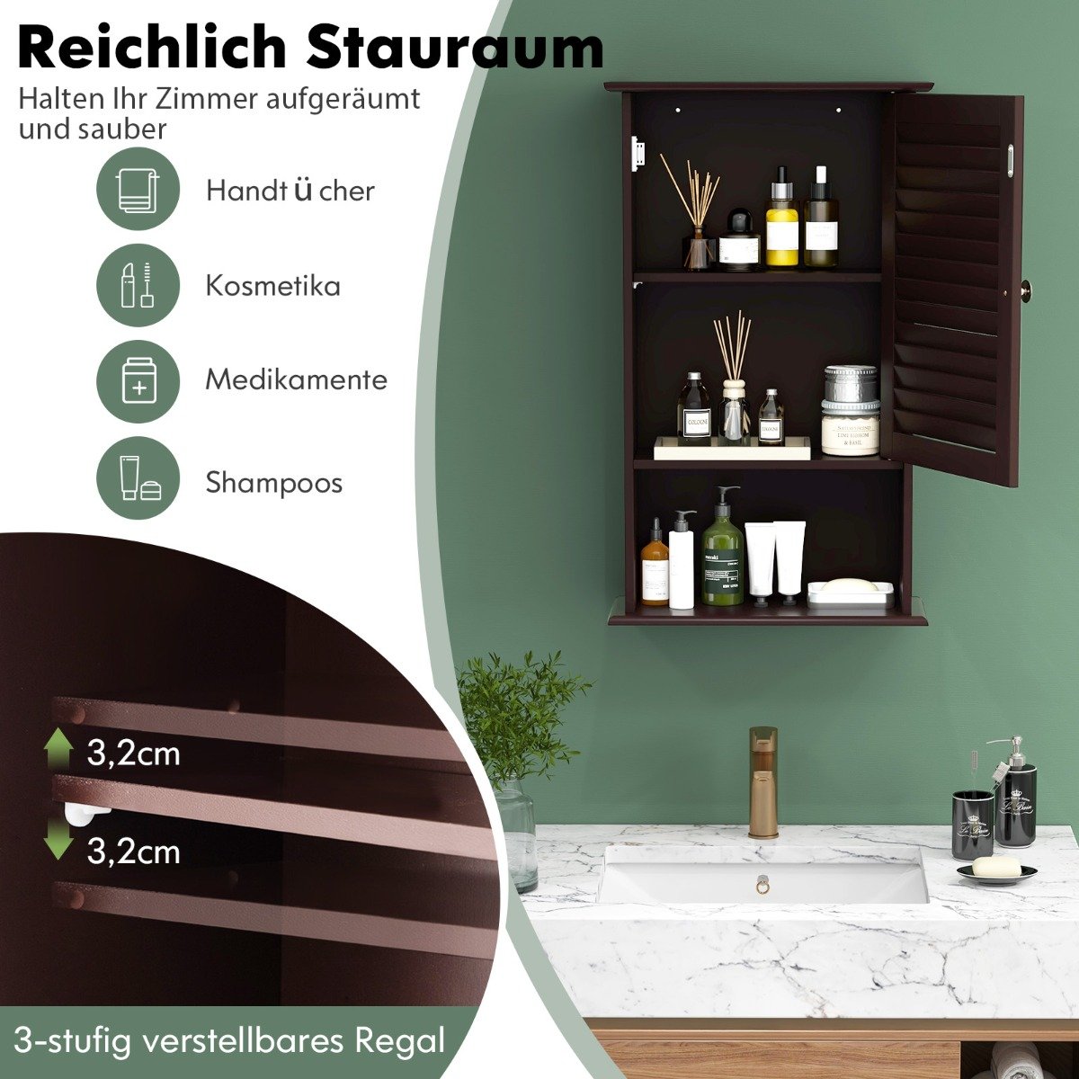Vonios spintelė su reguliuojama lentyna (Ruda)