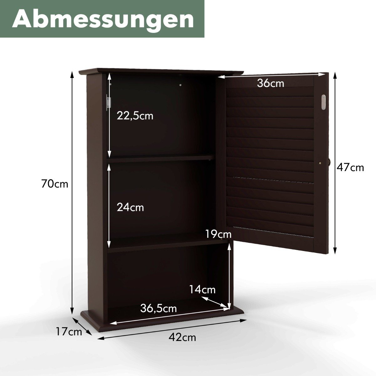- Matmenys (P x G x A): 42 x 16,5 x 70 cm