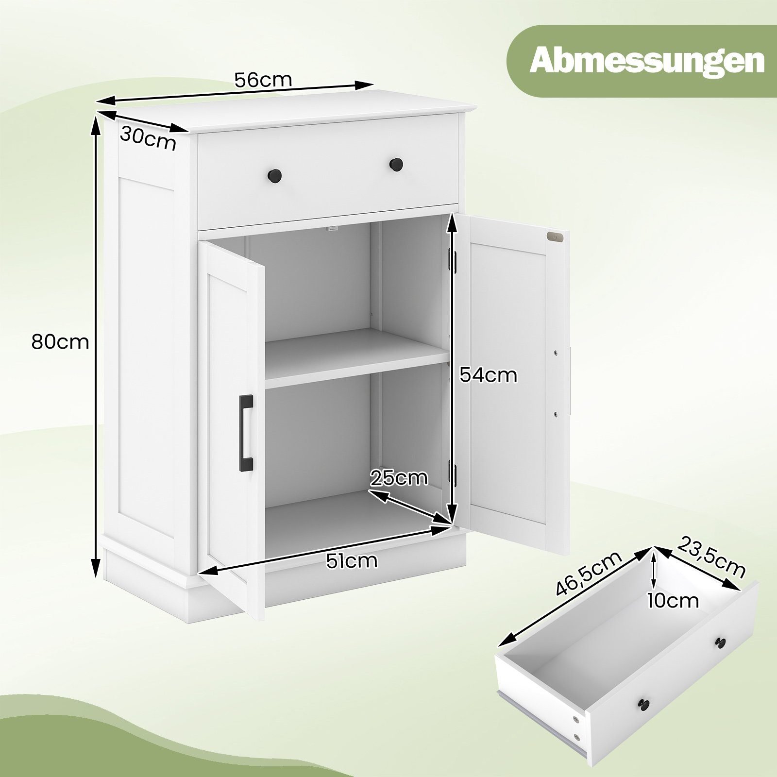Vonios spintelė su stalčiumi ir durelėmis 56 x 30 x 80 cm (Balta)