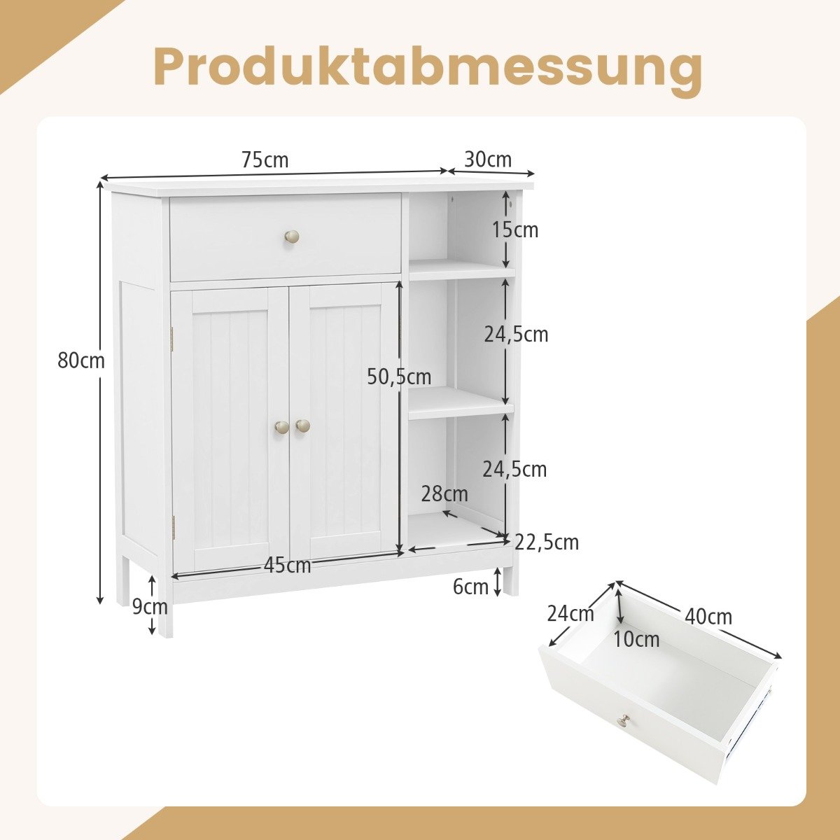 Vonios spintelė su stalčiumi ir durelėmis 75 x 30 x 80 cm (Balta)