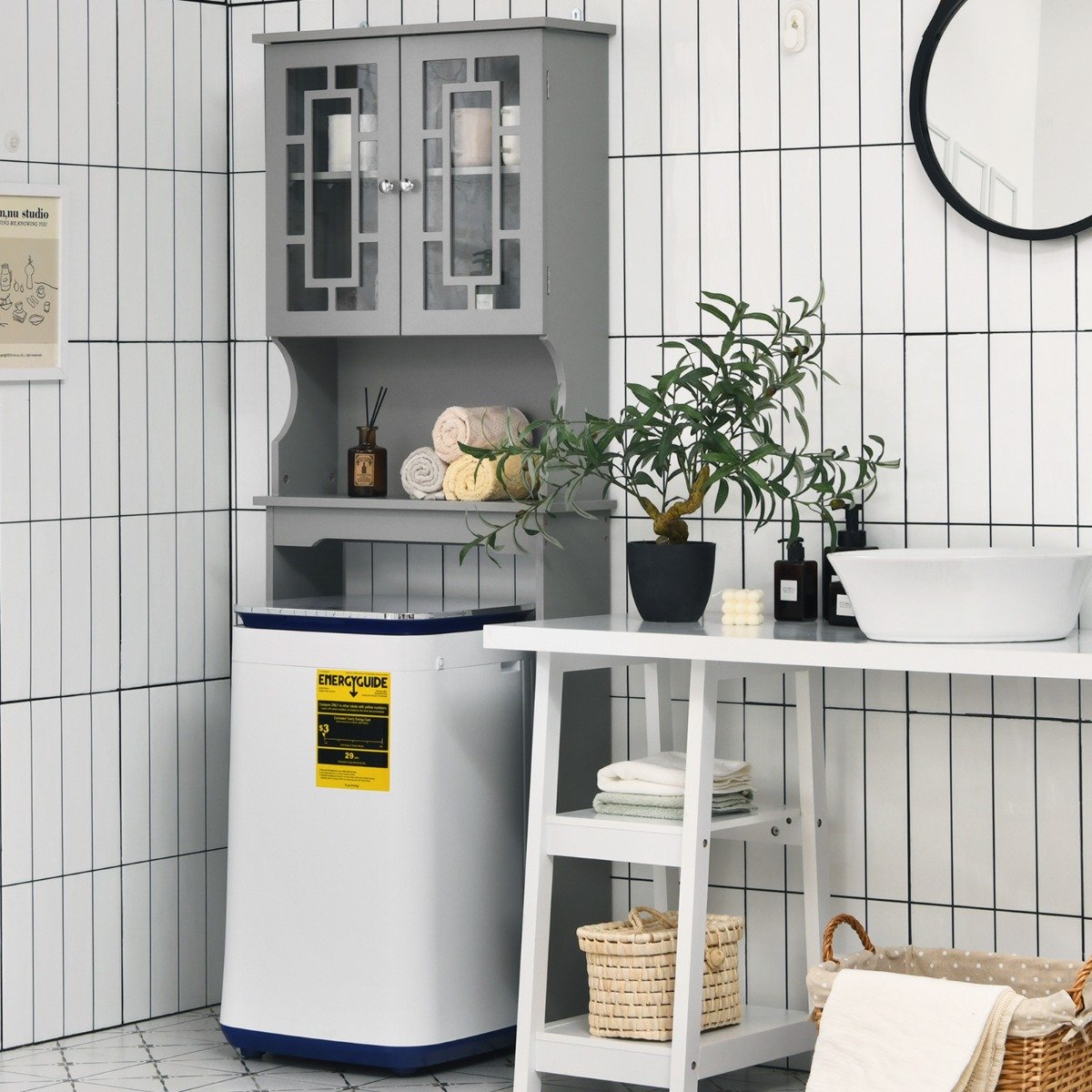 Optimizuokite savo vonios erdvę su šia funkcionalia ir stilinga spintelė, puikiai tinkančia pastatyti virš unitazo ar skalbimo mašinos. Dvigubos durys apsaugo daiktus nuo dulkių ir iškritimo, o reguliuojama lentyna leidžia lengvai pritaikyti saugojimo vietą pagal Jūsų poreikius. Elegantiškas dizainas harmoningai derės prie bet kokio interjero.