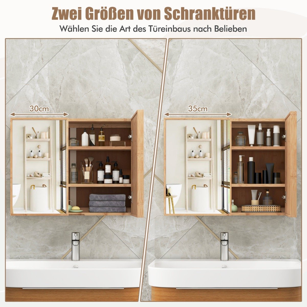 Vonios veidrodinė spintelė su dviem durelėmis ir reguliuojamomis lentynomis (Natūrali)