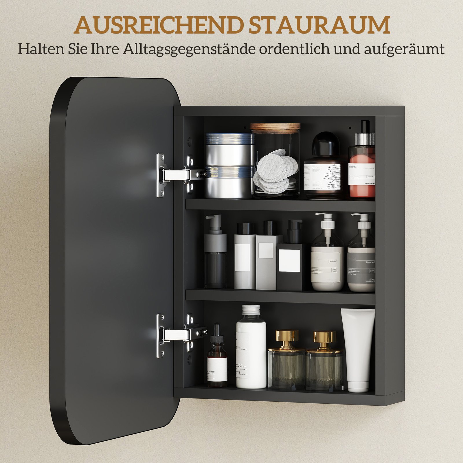 ✔ Ši veidrodinė spintelė siūlo lanksčią laikymo vietą su dviem reguliuojamomis lentynomis ir šešiomis aukščio parinktimis