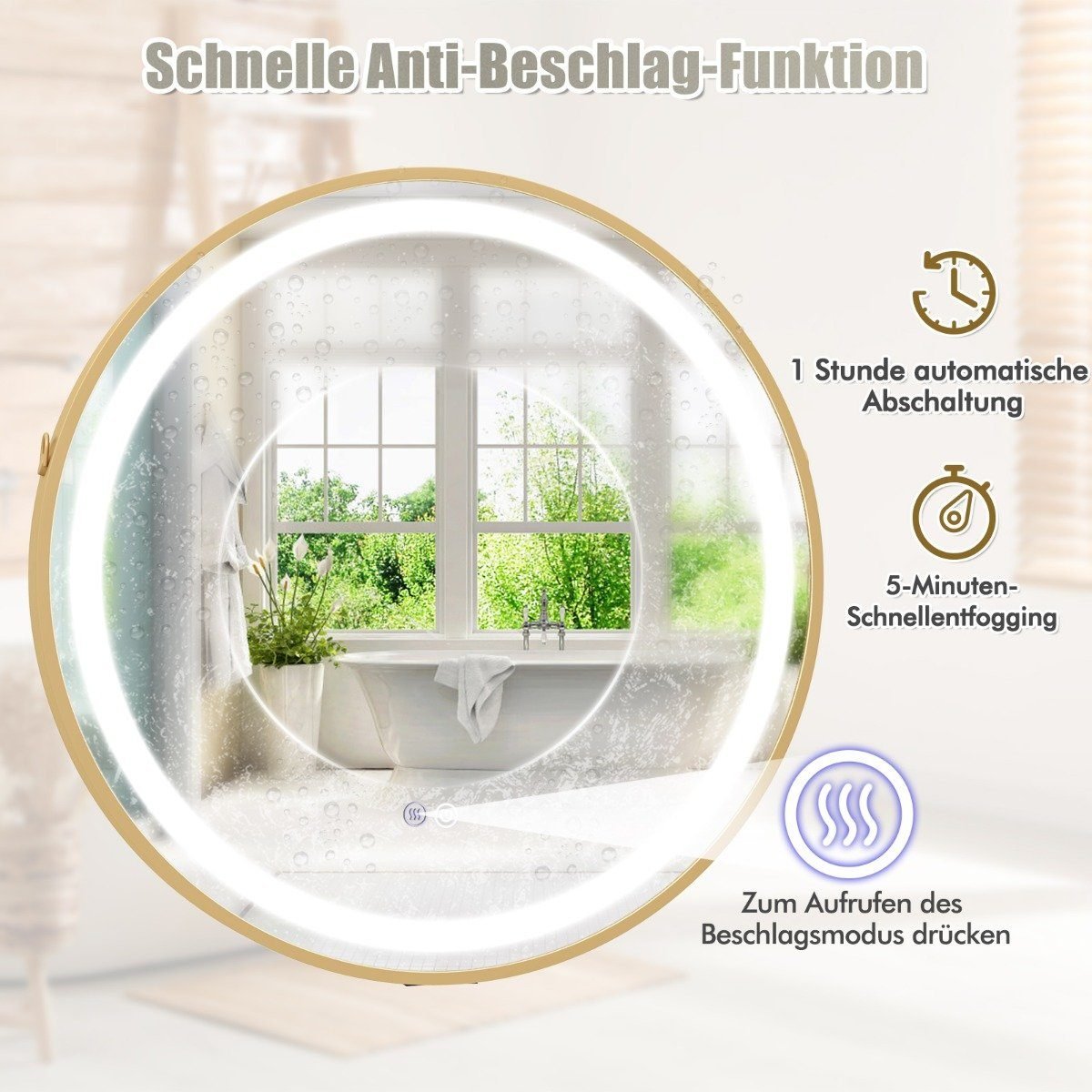Vonios veidrodis su LED apšvietimu ir antiblikse funkcija (Sidabrinė)