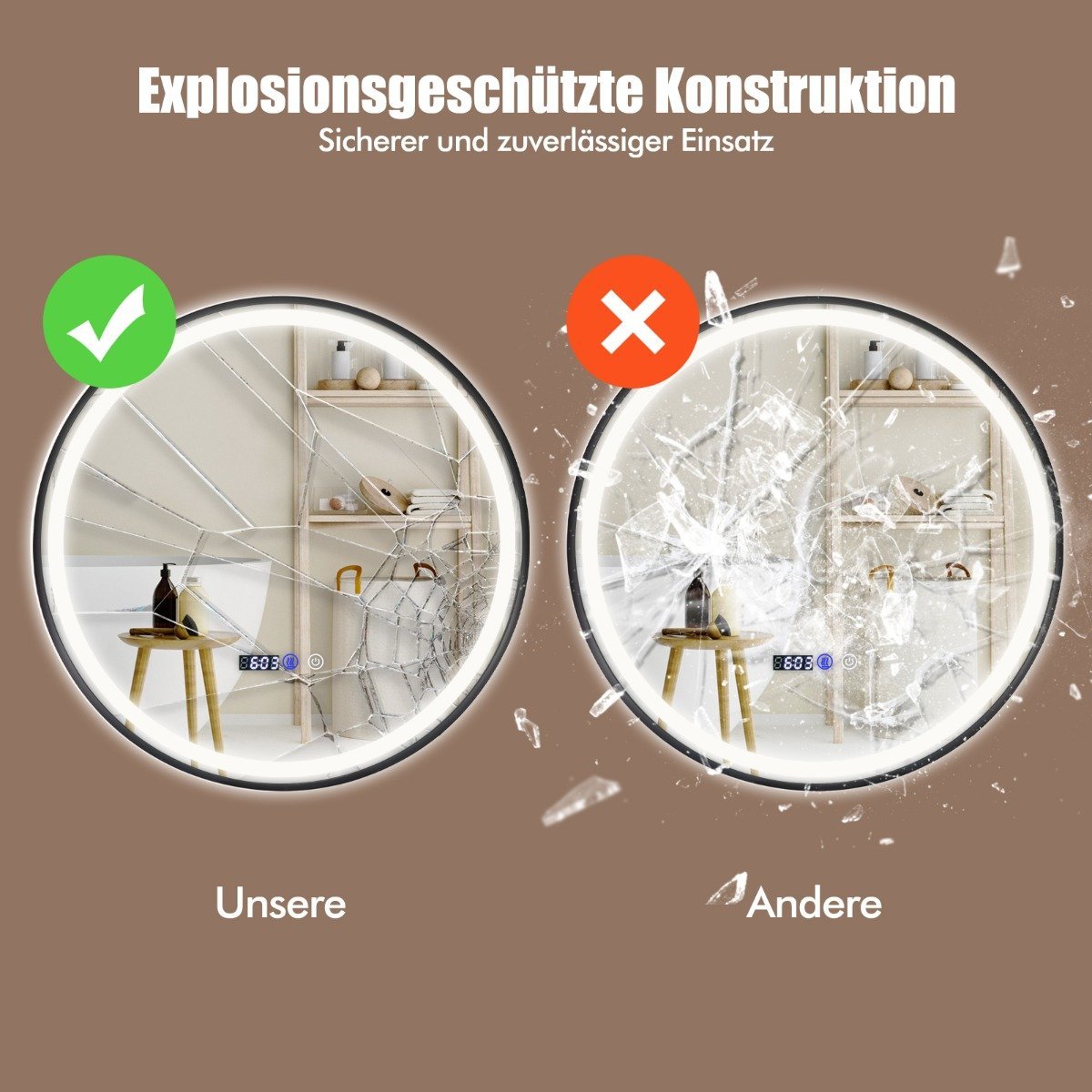- Dėl atsparumo dūžiams veidrodis yra itin saugus naudoti.