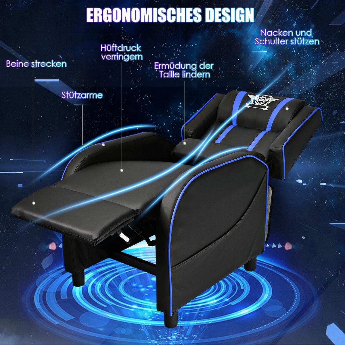 Žaidimų ir poilsio fotelis su reguliuojamu atlošu ir ištraukiama kojų atrama (Mėlyna)