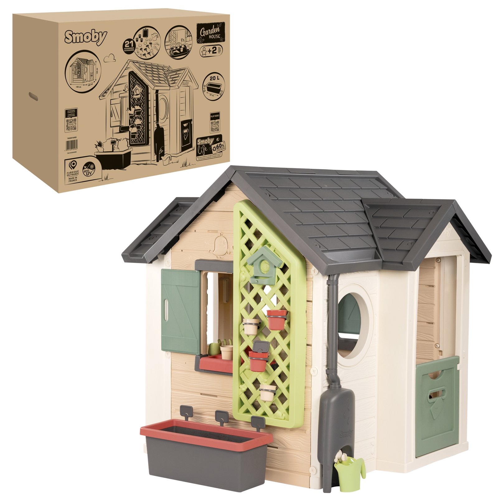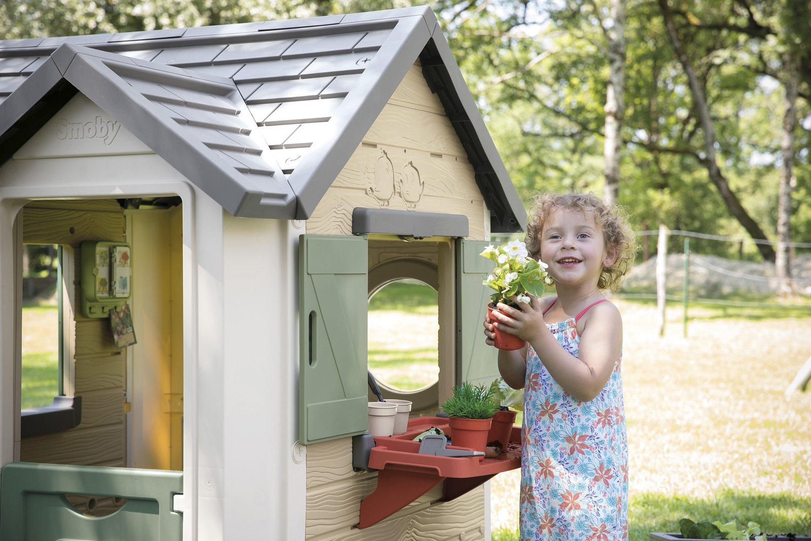 Sodininko namelis – puikus pasirinkimas mažiesiems sodininkams, norintiems sukurti savo sodą. Šis tikroviškas namelis leis 2 metų ir vyresniems vaikams lavinti sodininkystės įgūdžius, mėgdžiojant suaugusiuosius. Pagamintas iš aplinkai draugiškų medžiagų, namelis užtikrina smagų laisvalaikį gryname ore, o tvirta jo konstrukcija garantuoja ilgaamžiškumą.