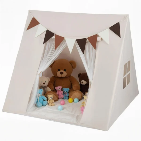 Didelė vaikų žaidimų palapinė su girliandomis ir vėliavėlėmis (Smėlio)