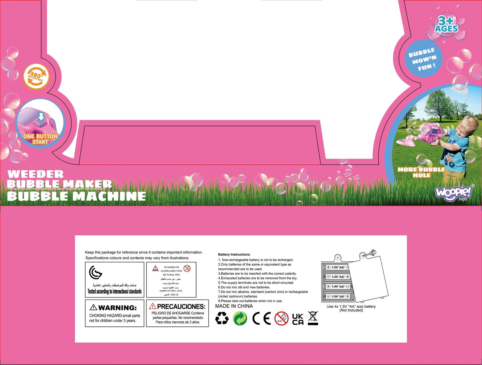 Šis burbulų pūstuvas, sukurtas vejapjovės pavidalu, pavers įprastą popietę tikru nuotykiu ir patrauks tiek vaikų, tiek suaugusiųjų dėmesį. 360 laipsnių kampu besisukanti galvutė su lemputėmis leidžia burbulams skristi įvairiomis kryptimis, sukurdama žaismingą atmosferą. Nuimamas antgalis leidžia akimirksniu paversti žaislą klasikiniu burbulų pūstuvu. Šis pūstuvas puikiai tinka žaidimams sode, vakarėliams ar kitoms pramogoms lauke.