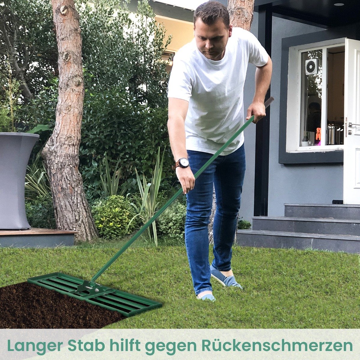 Žemės niveliavimo grėblys su 170 cm ergonomiška rankena (Žalia)